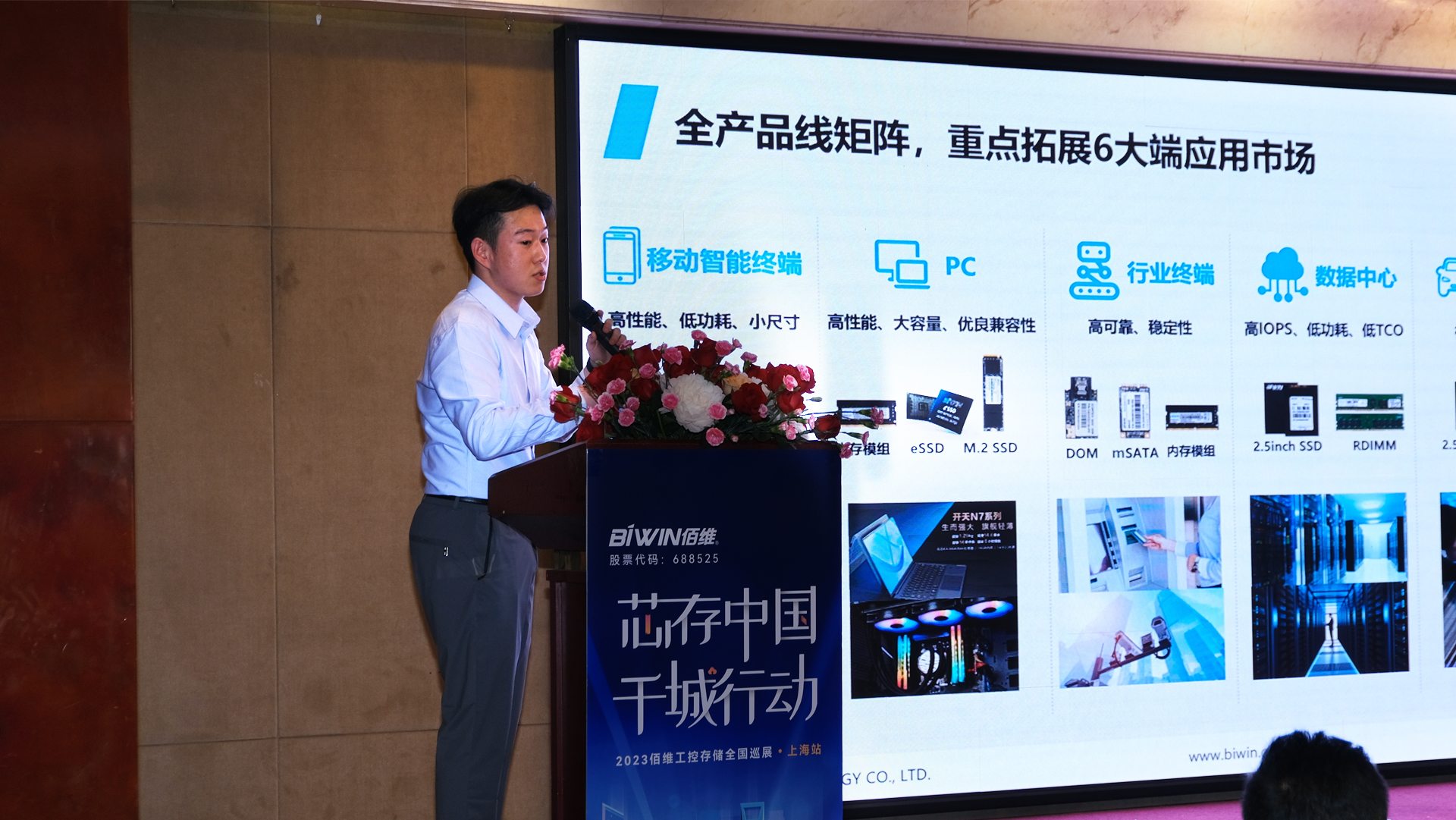 金年会 金字招牌诚信至上技术研发中心产品测试部副总监潘峻峰分享了公司工控内存模组技术及应用。基于采用原厂原装芯片、自研软件Biwinsight、严苛成品测试、颗粒特性分析及筛选测试等技术优势,以及贯穿客户需求、产品开发、物料选型、封装测试和生产交付等每个环节严苛管理,公司DDR5、DDR4内存模组兼具高性能、低延迟、高可靠等特点,广泛应用于PC、服务器、AIoT、5G应用、边缘计算、工控等领域。